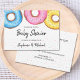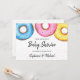 This cute baby shower invitation features watercolor doughnuts in pink, blue, and yellow.
