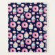 Sweet treats - Doughnuts with pink glaze icings, cupcakes in dark pink and white paper cups with pale pink or white icing and topped with strawberries or icing flowers and pale pink macarons in a repeating pattern on very dark blue. Personalise with your name or message in mixed pale blue font.