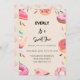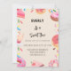 Colourful cute girl first birthday party invitation featuring illustration of doughnuts with colourful sprinkles.