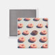 This design features a chocolate doughnut amongst a big group of pink doughnuts.