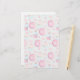 Yummy stationery with a delicious pattern design. Glazed pink doughnuts with sprinkles. Mouth watering cupcakes in pink and blue with rosettes and strawberries on top. Some pastel pink french pastry macarons and little pink candy buttons also decorate this pattern full of sweet treats. A semi-transparent overlay has been added over top so that the design has a light faded appearance so you can write legibly over the image.