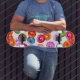 Doughnuts seamless pattern + your backgr. & ideas skateboard