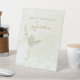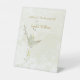 It is sturdy than I expected. Was worried about the material being flimsy but it is not. It is printed on some sort of plastic material. It should serve well at our wedding as long as wind isn’t too bad. Otherwise we will put some paper weights behind it and should be fine.