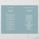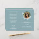 Modern memorial service program printed on a paper sheet you fold yourself. The funeral program features your loved one's photo inside a hand-drawn white wreath on a dove blue background.