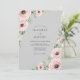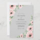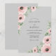 This design showcases a soft dove gray background adorned with delicate blush pink ranunculus and anemone blossoms. Lush sage green foliage accents the corners, creating a serene and balanced floral arrangement. The watercolor style and muted palette evoke a romantic, timeless feel suitable for refined spring or winter nuptials.