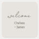 Chic and elegant 'welcome' wedding sticker, featuring couple names in a contemporary set of neutral blackish fonts against a chic dove grey background. This item forms part of a wedding suite containing invitations and stationary in a variety of neutral mix and match items. .