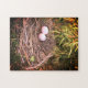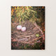 This puzzle features a photo of a dove nest in a cedar tree with its two eggs.