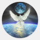 A white Dove of Peace spreads its wings over Planet Earth as the sun rises above Earth's horizon with the Moon in the background. A starry sky and the bright blue glow of the world as seen from space is a beautiful image of Peace for Christmas, Earth Day, or the New Year, or to use as a Christian symbol of the Holy Spirit of God.