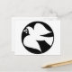 A white silhouette of the peace dove against a circle of black. In its beak, it carries an olive branch. An ancient peace sign, its message the same today as yesterday.