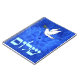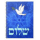 Features "shalom" (Hebrew "peace") and a dove carrying a bit of olive branch in its beak on a nice blue and white fractal background which is reminiscent of birds wings.