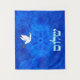 Features "shalom" (Hebrew "peace") and a dove carrying a bit of olive branch in its beak on a nice blue and white fractal background which is reminiscent of birds wings.