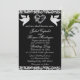 This romantic design features an elegant black background with glitter borders, a delicate silver heart & doves with details for the event in elegant script on the front and a QR code, a monogram placeholder and place for your website on the back. Also available with different colored backgrounds for your wedding theme colors. (Glitter is simulated in the artwork). Designed to coordinate with the "Two Shall Become One - Hearts, Doves & Glitter" Wedding Collection. To change details, click «Personalize». To move the text or change the text size, font, or color click «Click to customize further»