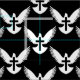 Dove silhouette with open wings and a cross. Seamless pattern. Custom background colour.