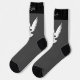 Dove silhouette with open wings and a cross. Custom background colour. Custom top stripe colour. Custom monogram. Custom text on each sock.