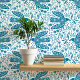 Doves and Flowers Teal and White Bird Art Wallpaper