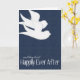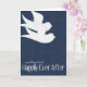 Two dove flying and at the bottom reads "and they lived happily ever after". Inside card reads "Congratulations".