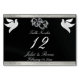 This romantic design features an elegant black background with ribbon borders, linked hearts & doves with a place for the table number, couple's names and date of event. Available in several colours for your wedding theme. (Ribbon is simulated in the artwork). Designed to coordinate with the "Two Shall Become One - Silver & Gold" Wedding Collection. To change details, click «Personalise». To move the text or change the text size, font, or colour click «Click to customise further».