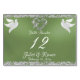 This romantic design features an elegant sage green background with glitter borders, heart & doves with a place for the table number, couple's names and date of event. Available in several colours for your wedding theme. (Glitter is simulated in the artwork). Designed to coordinate with the "Two Shall Become One - Doves, Heart & Glitter" Wedding Collection. To change details, click «Personalise». To move the text or change the text size, font, or colour click «Click to customise further».