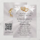 This romantic design features an elegant white pearl background with linked hearts & doves. Details for the event in elegant script on the front and a QR code, with monogram placeholder and place for your website on the back. Available in several colors for your wedding theme colors. Designed to coordinate with the "Two Shall Become One - Silver & Gold" Wedding Collection. To change details, click «Personalize». To move the text or change the text size, font, or color click «Click to customize further»