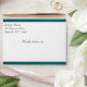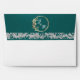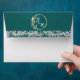 This design features pearl doves on a teal background on the inside flap, borders on front with a leaf monogram & glitter on back flap. (Glitter is simulated in artwork - not real glitter). Personalise the return address on front and the doves on inside flap can easily be replaced or removed if prefer. Available in several colours for your wedding theme. Designed to coordinate with the "Two Shall Become One - Hearts, Doves & Glitter" Wedding Collection. To change details, click «Personalise». To move the text or change the text size, font, or colour click «Click to customise further»