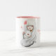 Mug prints “Down in the rabbit hole” with interior and handle rose.