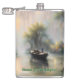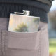 The flask itself is fine. It’s a cheap flask, obviously bought in bulk, however am prepared to overlook that. Given that it is a personalized item, I would have liked to have seen gift boxing instead of the generic packaging. Terrible printing, and/or quality. It’s a cheap, tacky vinyl. It is not cut straight and is also applied in a way that it is overhanging the bottom, causing the glue to catch on items and it will eventually roll and tear, damaging the wrap.
