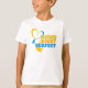 Encourage, support and promote awareness for those with trisomy 21 with this special tee! Because we all know they're not just rockin that extra chromosome, they're down right perfect! T-Shirt with words and the blue and yellow ribbon shaped into a heart.