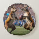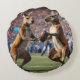 "Down Under Action: Kangaroos Playing Aussie Rules Round Cushion