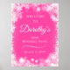 Set the tone for your 90th birthday party with this Winter Wonderland Snowflake Welcome Sign showstopper. For your convenience, this poster can be downloaded as well as ordered on paper. The white text on the pink background really pops and the white snowflake border makes it very festive. All of the text is editable, so you can choose just the right words to set just the right mood. This sign is part of the Winter Wonderland Snowflake collection. It contains DIY templates for you to use to make a unique invitation suite and personalised party decorations.
