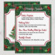 A beautiful Christmas table specials flyer (daily specials menu) featuring customisable menu specials on green plaid background with holly and berry accents. Great for your restaurant holiday table or holiday barroom food.