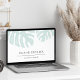 Island chic business logo design features a pair of vintage style monstera leaf illustrations in sheer seafoam green, with your name or company name and title overlaid beneath in modern grey lettering. Perfect for vacation rental property managers or any island based business. This design can be purchased as an instant digital download for your use.