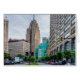 Greeting card featuring an urban street scene fine art photo looking down Monroe Avenue in downtown Detroit, Michigan, United States.