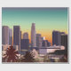 Colourful vector illustration featuring a gorgeous skyline dominated by skyscrapers and palm trees from downtown Los Angeles with a beautiful Californian sunset in the background.