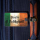 Handsome luggage tag features Doyle surname (English and Irish version) in fancy font on distressed Ireland flag background