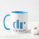 Celebrate professional achievements in style with this sleek and modern "dr" mug, featuring bold typography and a customisable name beneath. The sophisticated blue and white design, accented with a contrasting blue interior and handle, makes it a perfect gift for doctors, PhDs, or anyone with a well-deserved title. Whether for a graduation, promotion, or just as a thoughtful token of recognition, this personalised mug is a chic and meaningful way to honor hard work and success. 💡 How to Customise: - Click "Personalise this template" to add the name. - Want more changes? Choose "Edit using Design Tools" to adjust font type, colour, or layout.