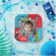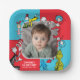 Serve up a slice of birthday cake and a whole lot of fun with these whimsical, customised plates! Featuring a playful border of beloved Dr. Seuss characters on a vibrant red and blue background, these plates can be personalised with a child's name, age and photo. The lively design and durable quality make them a must-have for serving snacks and meals, ensuring every detail of the party from the food to the decor is perfectly in sync with your theme.