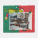 This blanket is perfectly balanced between Christmas cheer and holiday mischief! This fun, cozy custom photo blanket is framed with a bold red and green diagonal stripe pattern and features a large center space for your favorite family photo. Standing watch is the full-body grumpy Grinch in his Santa hat, pointing and looking suspicious! With cheerful presents and stockings decorating the frame, this blanket is the perfect whimsical gift for staying warm while embracing your inner curmudgeon!