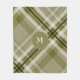 drab olive and beige plaid monogrammed fleece blanket