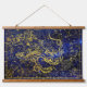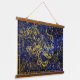 Beautiful wall tapestry features dozen of celestial constellation illustrations including prominent Draco, in gold on night blue starry sky background