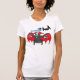 This design is dracula and a bat. Dracula has his cape open and there is a bat flying around. This dracula and bat design looks great on this Womens T-Shirt