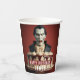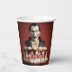 Birthday paper cups featuring a Dracula Vampire themed birthday cake. And "Happy Birthday", all-caps bold font. Customise it by adding your name(s).