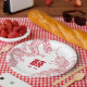 A custom set of wedding paper plates tailored to a dragon and phoenix-themed wedding.