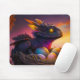This mousepad has a dragon with eggs pictured on it.