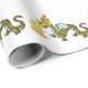 Dragon-themed gift wrap featuring fire-breathing dragon blowing out birthday candles.