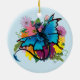 Dragon Blue Butterfly Flowers Ceramic Ornament