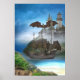 Dragons guarded an old castle. A dragon sits on the roof from the Castle