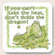 Illustration of a sly dragon, sleeping with one eye open, with the text, "If you can't take the heat, don't tickle the dragon!" Customise for a motivational or inspirational message.