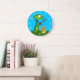 Cute little cartoon dragon with big googly eyes and a yellow horn toasting a marshmallow over a camp fire. This clock would look great in any child's room. Make telling time fun! Original digital cartoon art by Taylor Addams.