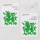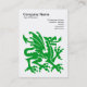 A business card template with a bold heraldic dragon symbol. Company name, business type and address on the front with name, job title, telephony, web and email addresses on the back, with the same layout.