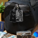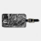 A dragon lurks in a cave deep underground. Luggage tag with a black and white customisable design for you to personalise with your own text, pictures and ideas. An original ink drawing by Jess Perry.